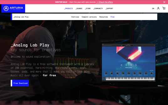 Arturia on yksi arvostetuimmista nimistä virtuaalisyntetisaattoreiden ja klassisten instrumenttien saralla. Laajojen premium-kokoelmiensa lisäksi Arturia tarjoaa myös ilmaisversioita ja työkaluja, joiden avulla tuottajien ja DJ:iden on helppo päästä alkuun high-quality synth-soundeilla ilman investointia