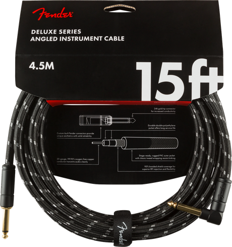 Fender Deluxe Guitar Cable Angle Connector (Black Tweed, 4.5m)