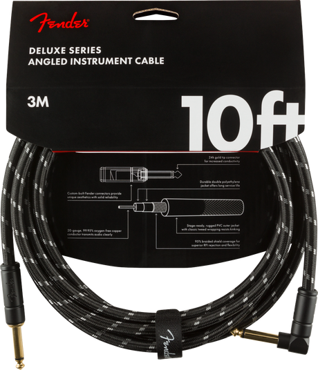 Fender Deluxe kitarakaapelin kulmaliitin (Black Tweed, 3m)