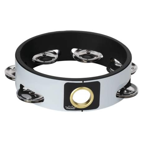 Tamburiini, joka klassisessa muodossaan on metallikiekkoja ja kelloja, löytyy myös nahalla.