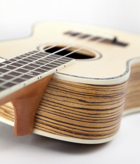 The Sopranino ukulele is the smallest of the family with a length of only 32-41 cm. This model dates back to 1990 and is still incredibly popular today. The small size gives the instrument a penetrating sound that stands out beautifully in larger ensembles or bands. The sopranino is tuned: DGHE and is therefore the highest sounding in the ukulele family