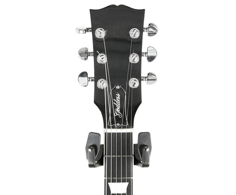 Our guitar wall mounts are screw-mounted to the wall and fit almost all guitars. Guitar wall mounts are made of iron, which makes them solid, and they are covered with a foam that protects your guitar from scratches and ensures it doesn't fall out of your guitar holder. Be aware of the wall you're screwing the mount into - if it's drywall, take care and use the right screws and rawlplugs - it's also important to use rawlplugs when hanging in brick and concrete walls. Test always hold the mount with your hand and a heavy weight downwards before hanging your guitar - it's more fun to have the mount torn down than to have the guitar fall when you least expect it!