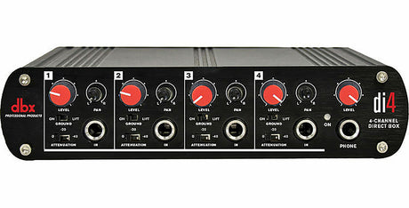 Tilaustuote -Arvioitu toimitusaika: 12 arkipäivää €50,00€53,00Kpl. hinta /Ei saatavilla dbx DI4 4-kanavainen DI-box, linjasekoitin