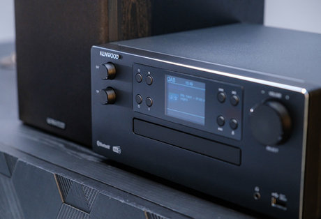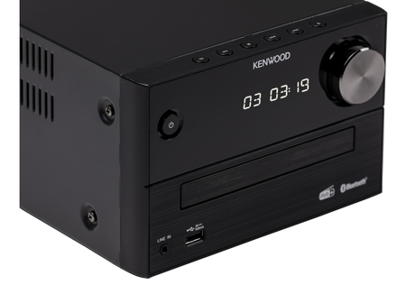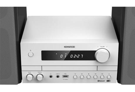 Kenwood M-822DAB Mini System, jossa on Bluetooth ja DAB+ (valkoinen).