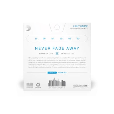 Tilaustuote -Arvioitu toimitusaika: 12 arkipäivää €20,00Kpl. hinta /Ei saatavillaDaddario XSAPB1253 Fosforipronssinen kitarajousi (Light, 12-53)