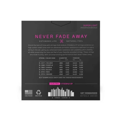 Tilaustuote -Arvioitu toimitusaika: 12 arkipäivää €36,00Kpl. hinta /Ei saatavillaDaddario XTE päällystetyt kitarajouset (11-49)
