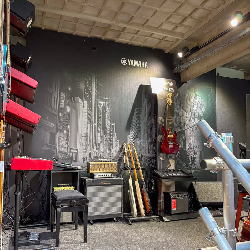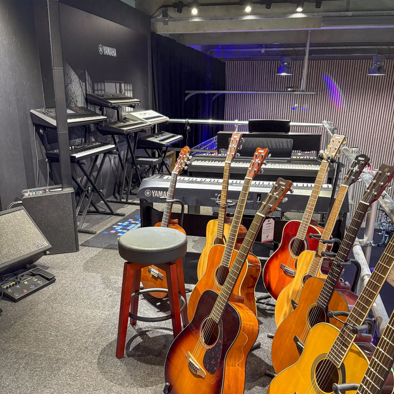 Showroomissa on myös esillä valikoituja tuotteita johtavilta merkeiltä, kuten Grooveland, Renton, Yamaha ja Roland.