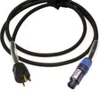 Virtayhteyskaapeli powerCON-kaapeliliittimellä ja iskunkestävällä DK-liittimellä, jossa on maadoitus.
