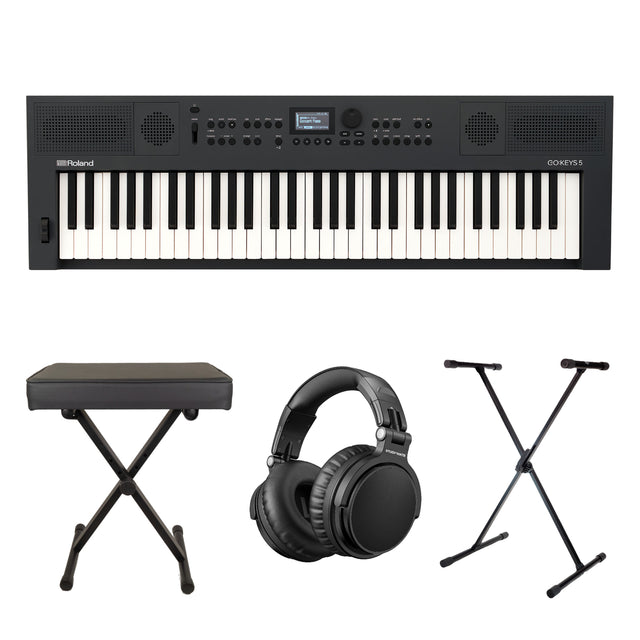 - Tässä aloituspaketissa saat GO:KEYS 5:n, hyvät kuulokkeet, vakaan jalustan ja näppäimistöpenkin hyvin soivan GO:KEYS 5:n lisäksi.