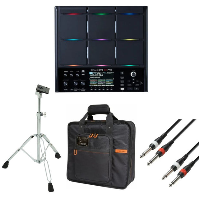 Tässä paketissa saat kaiken SPD SX:stä tutun, mutta isomman, nopeamman ja paremman - Rolandin uusi lippulaiva on saapunut. Saat myös jalustan, laukun ja kaapelit.