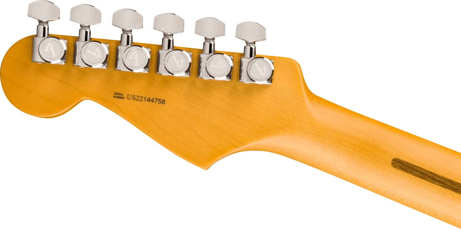 - 70th Anniversary American Professional II Stratocaster leppärungolla, kauniilla flamed-vaahterakannella, Comet Burst -viimeistelyllä.