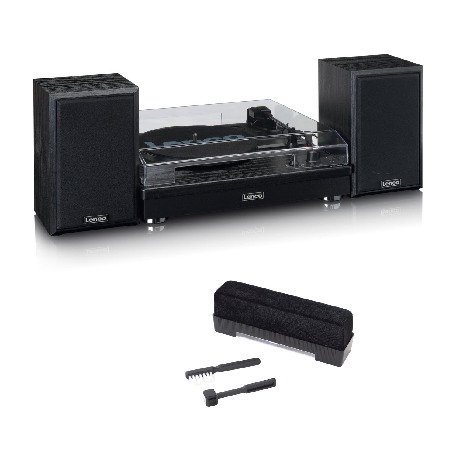 Nauti vinyylikokoelmastasi Lenco LS-101BK-levysoittimella. Sen kahden kaiuttimen ansiosta, joiden molempien lähtöteho on 10 W, voit kuunnella musiikkia laadukkaasti. Kaiuttimet ovat siirrettävissä, ja niitä voi sijoittaa ympäri huonetta stereovaikutelman parantamiseksi.
