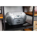 - Kannettava stereo FM-radio CD-soittimella ja kasettisoittimella