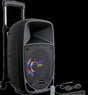 Paristokäyttöinen kaiutin, jossa on 8" yksikkö, jossa on sisäänrakennettu LED-valoefekti Sisältää mikrofonin. Toistaa Bluetooth, micro usb, FX-viritin tai AUX-tulosta. Teleskooppinen vaunukahva ja pyörät.