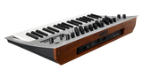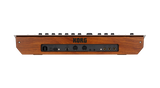 Syntetisaattori on vankka ja tyylikäs alumiinisella yläpaneelilla, kumipäällysteisillä nupeilla ja puisella takapuolella.