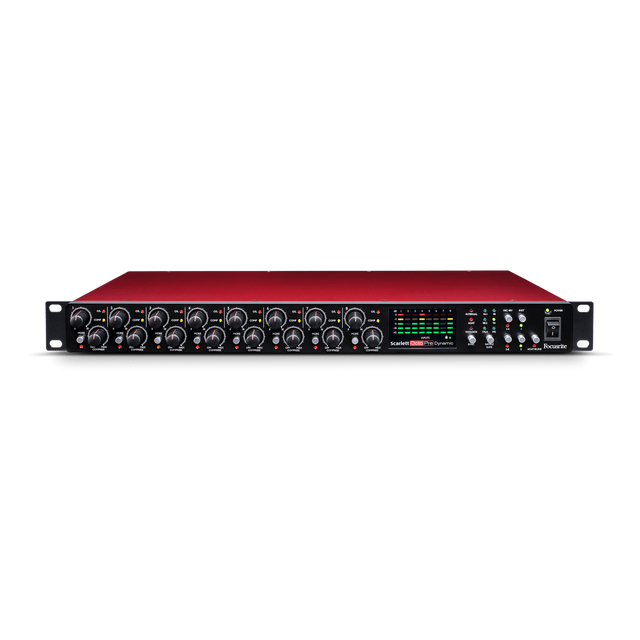 - 8 mikrofonin esivahvistinta Scarlett-sarjasta, joista 2 HI-Z-tulolla kitaralle ja bassolle.