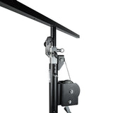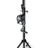Adam Hall valaisinjalusta, jossa on älykäs korkeussäätö kelaamalla. suuren 85 kg:n kantavuuden, irrotettavan poikkipalkin ja halkaisijaltaan 35 mm:n yläputken ansiosta SWU400T soveltuu myös kaiutintelineeksi.
