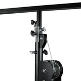 Mustaksi maalattu vankka teräsrakenne, jossa on sinkitty jatke, johon säädettävät osat on kiinnitetty jousipulteilla. Säädettävä korkeus 190,5 cm:stä 4 metriin.
