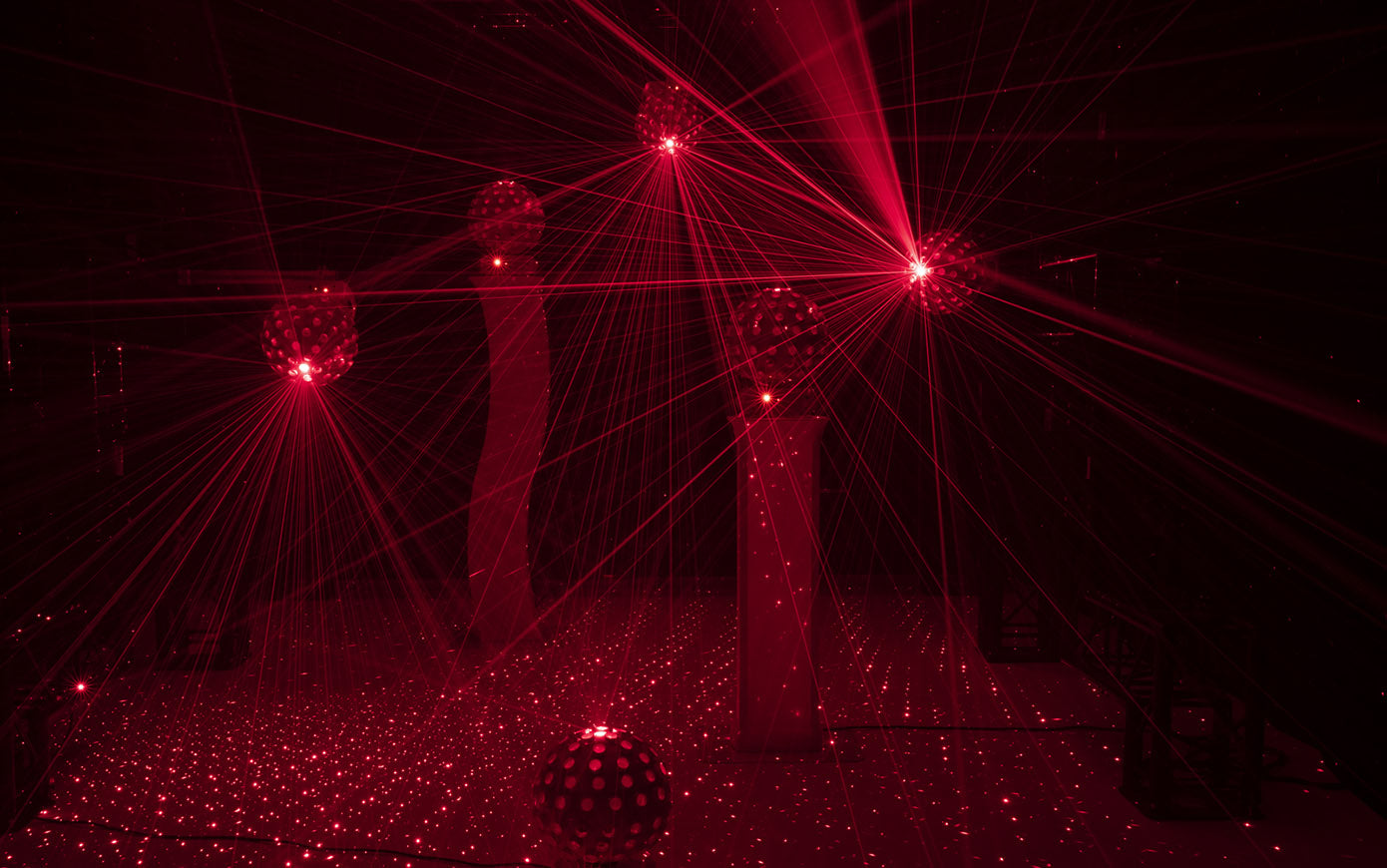 - 2 laserdiodia heijastaa tuhansia punaisia ja vihreitä lasersäteitä.