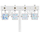 - Baari, jossa on 4 RGBW-spottia ja 4 valkoista strobovaloa, QuickDMX-liittimellä (XLR)
