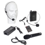 - 2 UHF-mikrofonia: käsimikrofoni (863 MHz) ja kuulokemikrofoni (865 MHz).