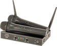 - 2-kanavainen UHF-järjestelmä, joka koostuu 2 käsimikrofonilähettimestä ja 1 vastaanottimesta.