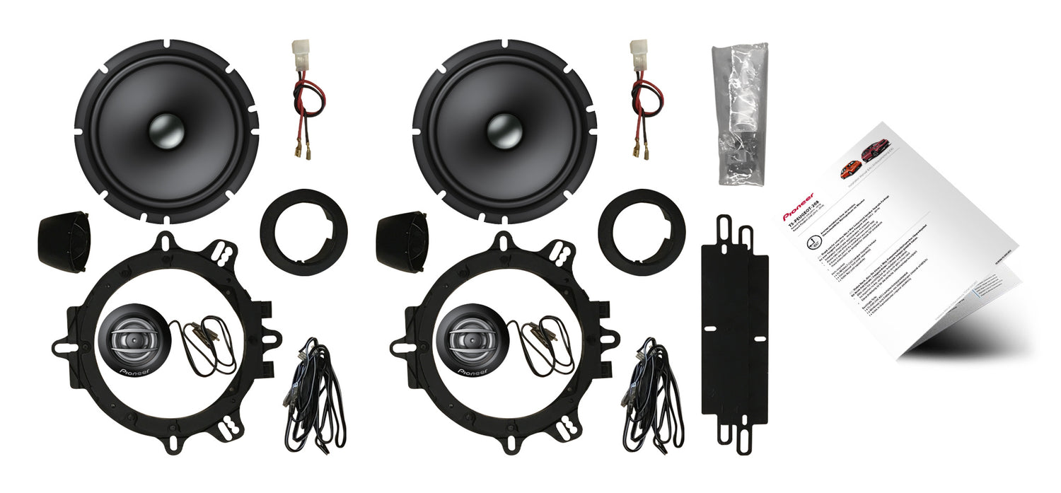 Päivitä autosi alkuperäinen äänentoistojärjestelmä Pioneer'n erityisellä, räätälöidyllä kaiuttimien päivityspaketilla. Tämä kaiutinpäivityspaketti on suunniteltu yksinkertaisen Plug & Play -konseptin mukaisesti. Paketti on helppo asentaa mukana tulevien lisävarusteiden ja mukana toimitetun asennusoppaan ansiosta.