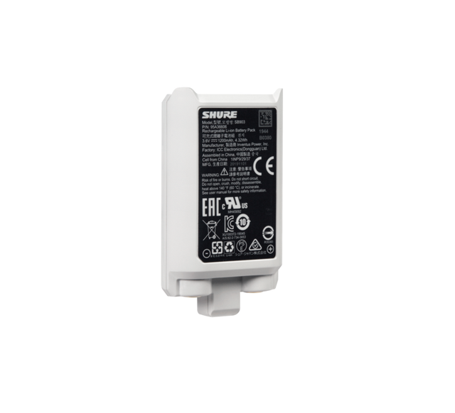 - Syöttää kaikkiin Shure SLXD-tyyppisiin lähettimiin jopa 8 tuntia.