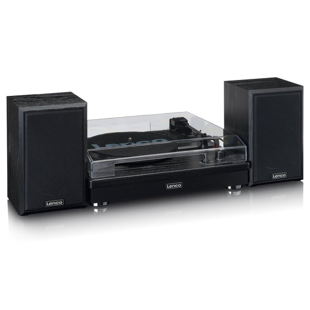 Nauti vinyylikokoelmastasi Lenco LS-101BK-levysoittimella. Sen kahden kaiuttimen ansiosta, joiden molempien lähtöteho on 10 W, voit kuunnella musiikkia laadukkaasti. Kaiuttimet ovat siirrettävissä, ja niitä voi sijoittaa ympäri huonetta stereovaikutelman parantamiseksi.