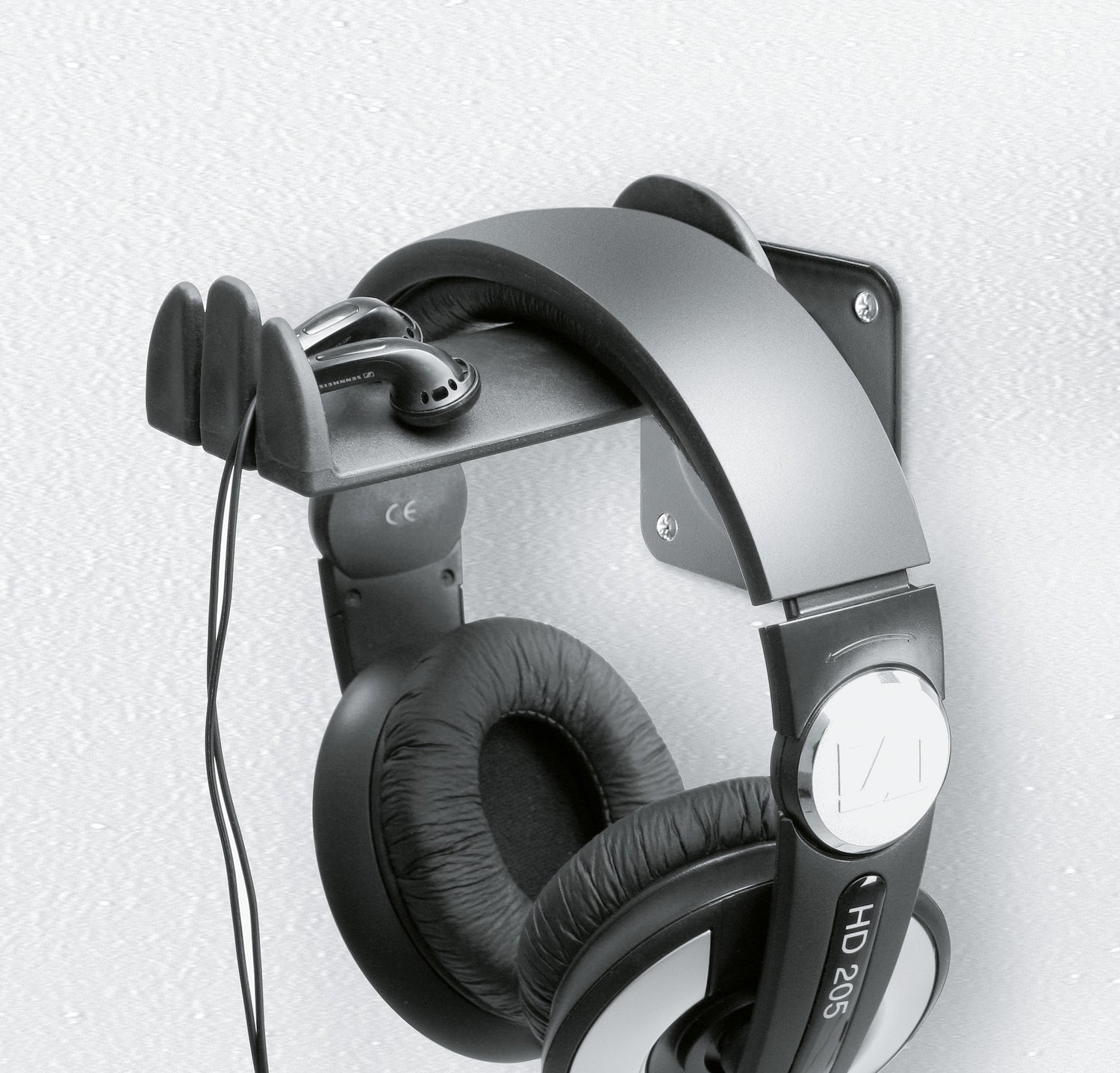 - Käytännöllinen kuulokepidike seinäkiinnitystä varten.