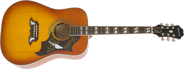 Epiphone's Dove Studio on super akustinen kitara. Vankka soolokitara, akustinen bändikitara tai kytke se vahvistimeen ja soita rumpujen ja sähkökitaroiden rinnalla. Laadukas kitara mihin tahansa tarkoitukseen.