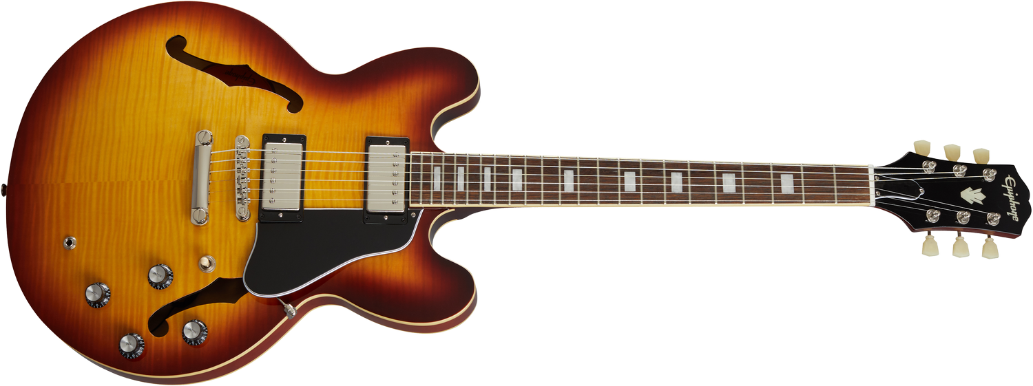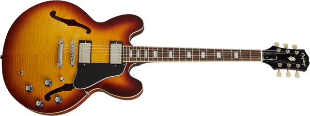 Legendaarinen ES-335 kauniina ja kiiltävänä versiona. Epiphone "Inspired by Gibson" ES-335 Figured a kunnianosoitus ES-335 sen ohut puoli-ontelo keula top, joka oli alku uuden trendin rock-maailmassa. Vahvan vaahterasta valmistetun keskilohkon ansiosta ES-335:ssä on hyvä sustain ja takaisinkytkennän kestävyys. Sähkökitara, joka iskee kaikissa ympäristöissä. Se näyttää upealta liekkivaahteraviilulla päällysteellä ja raspberry tee burst kiiltävällä viimeistelyllä.