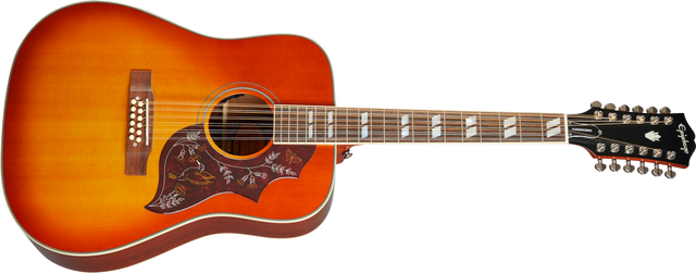 Ikonisen Gibson Hummingbird -akustisen kitaran innoittamana Epiphonen Gibson Hummingbird 12-kielinen akustinen kitara. Kitara on tunnettu selkeästä ja kirkkaasta soinnistaan, ja se tulee tässä Aged Cherry Sun vintage -lookissa.