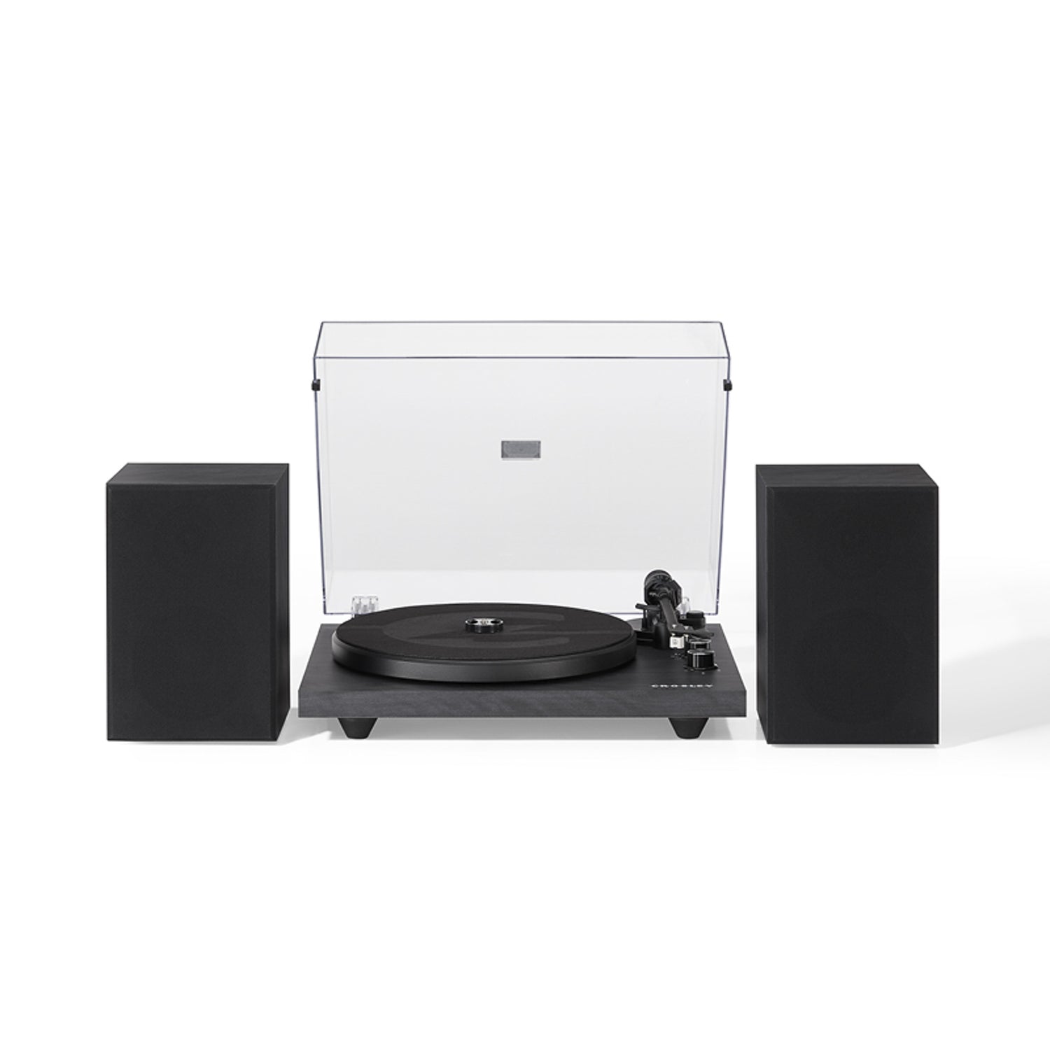 Hanki tämä upea C62 levysoitinjärjestelmä Crosleyltä. Paketti sisältää stereokaiuttimet ja tyylikkään Crosley levysoittimen - tässä mustana.