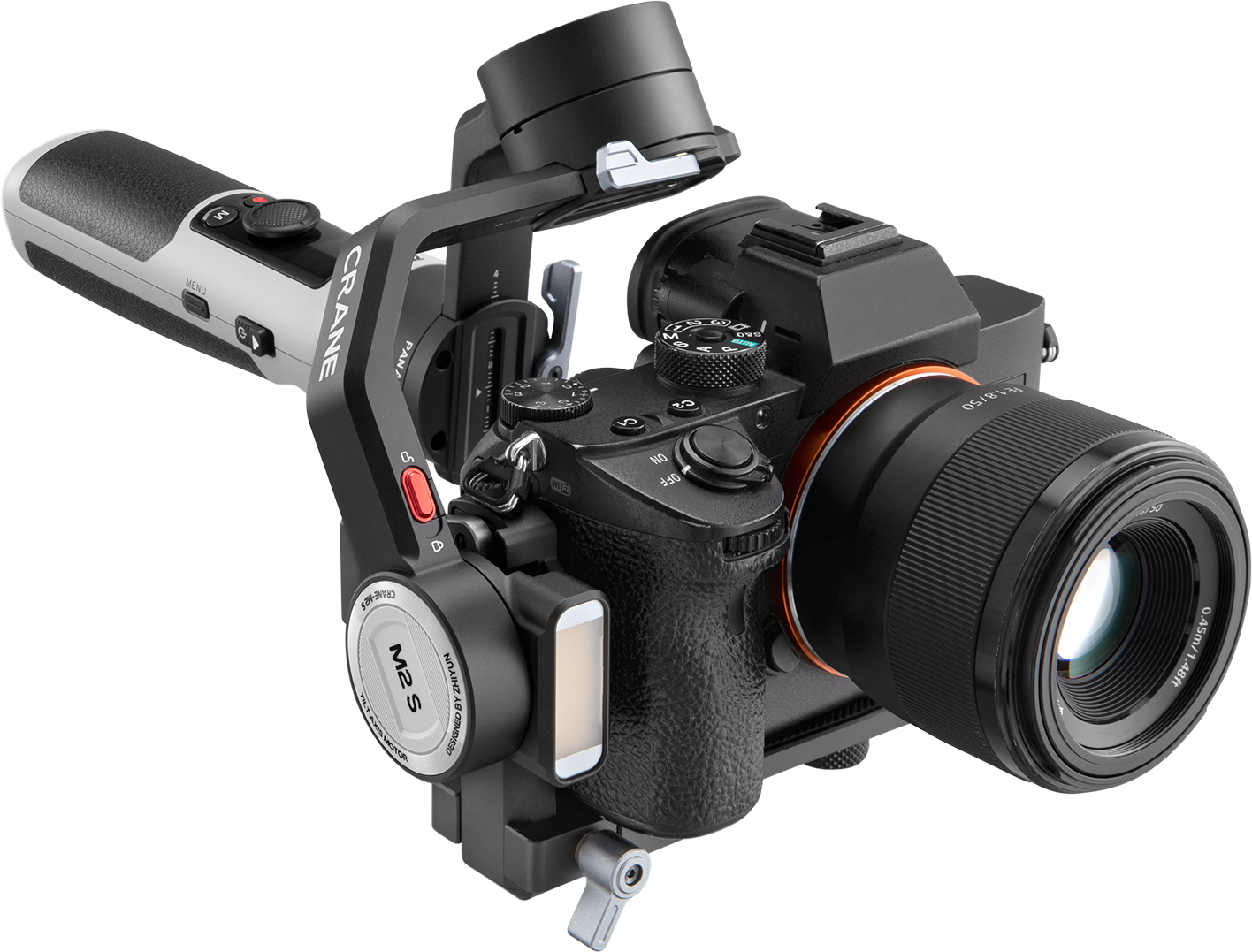 - Crane M2S:ssä on uusin versio pikavapautuksesta, joka löytyy Zhiyun:n huippuluokan kardaaneista.