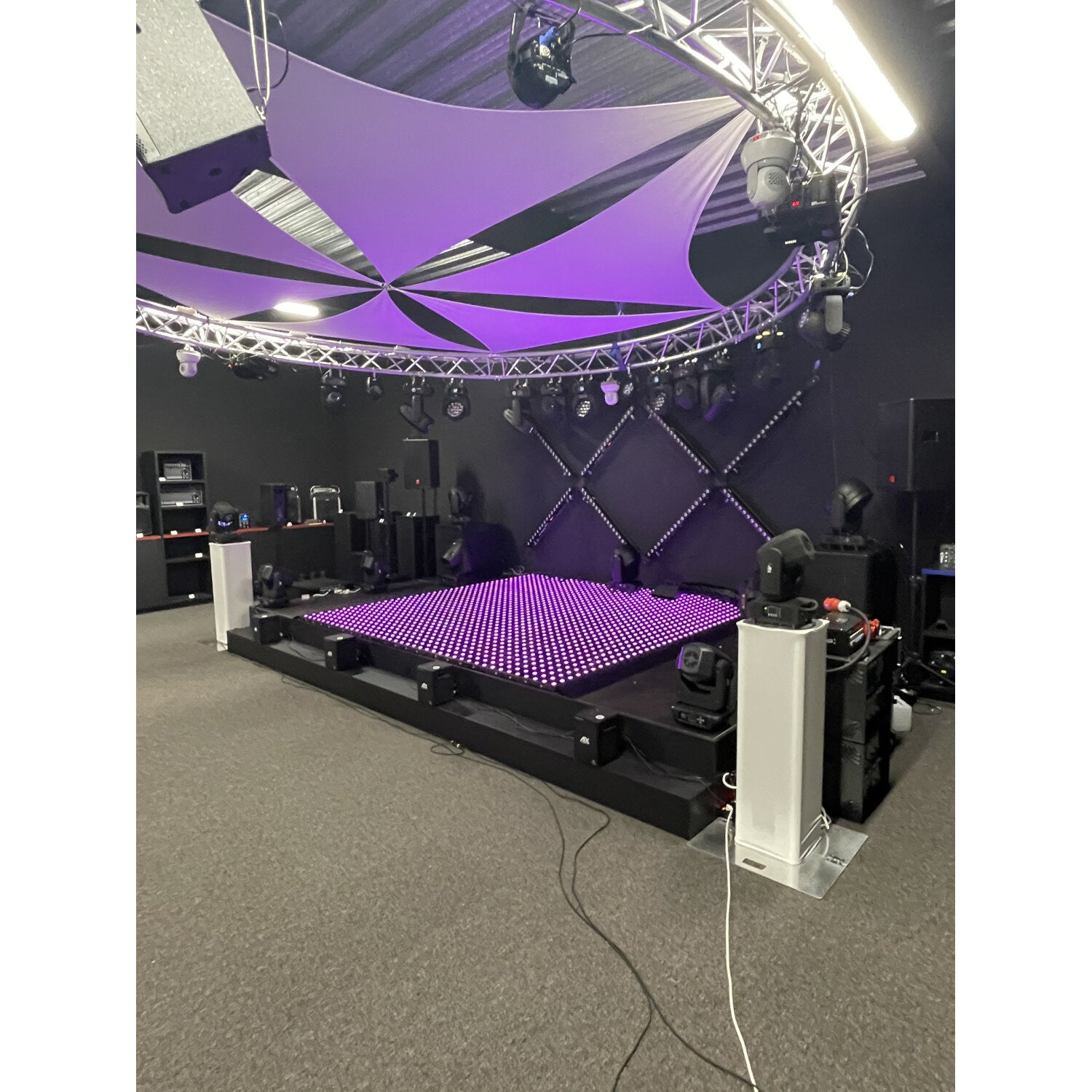- Täysin 3x3 tanssilattia, jossa on hienoja valaistustehosteita