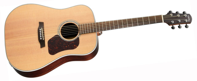 6-kielinen sähköakustinen kitara, jossa on dreadnought-runko - erittäin voimakas kitara, joka on valmistettu massiivisesta kuusesta ja maghonysta, joka ei petä.
