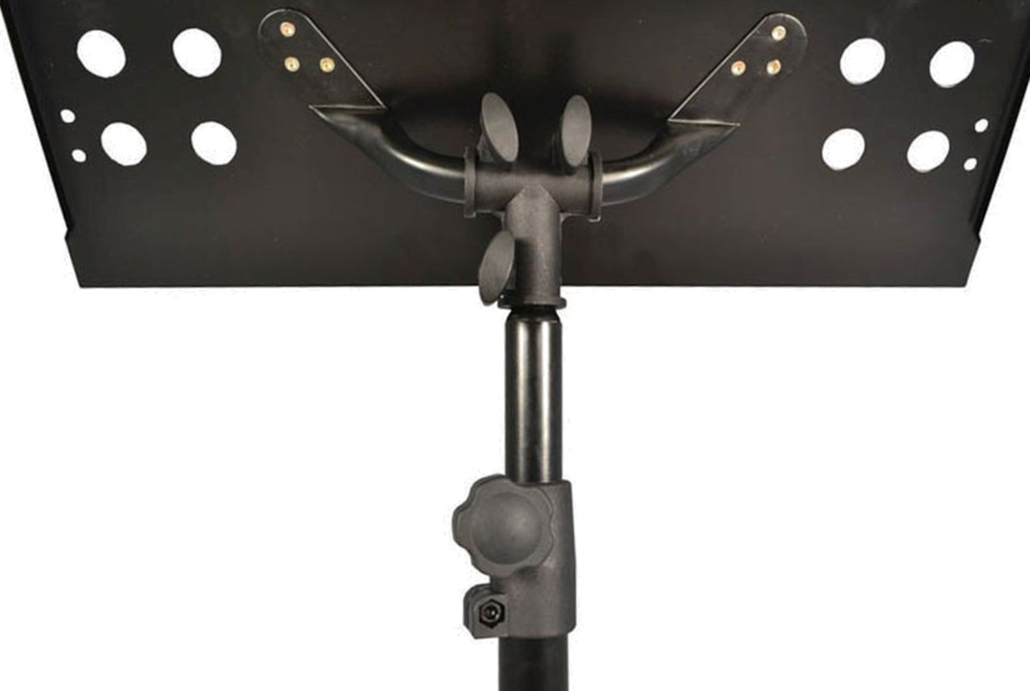 - Tämän nuottitelineen paneelia voidaan kallistaa 180 astetta ja korkeutta voidaan säätää.