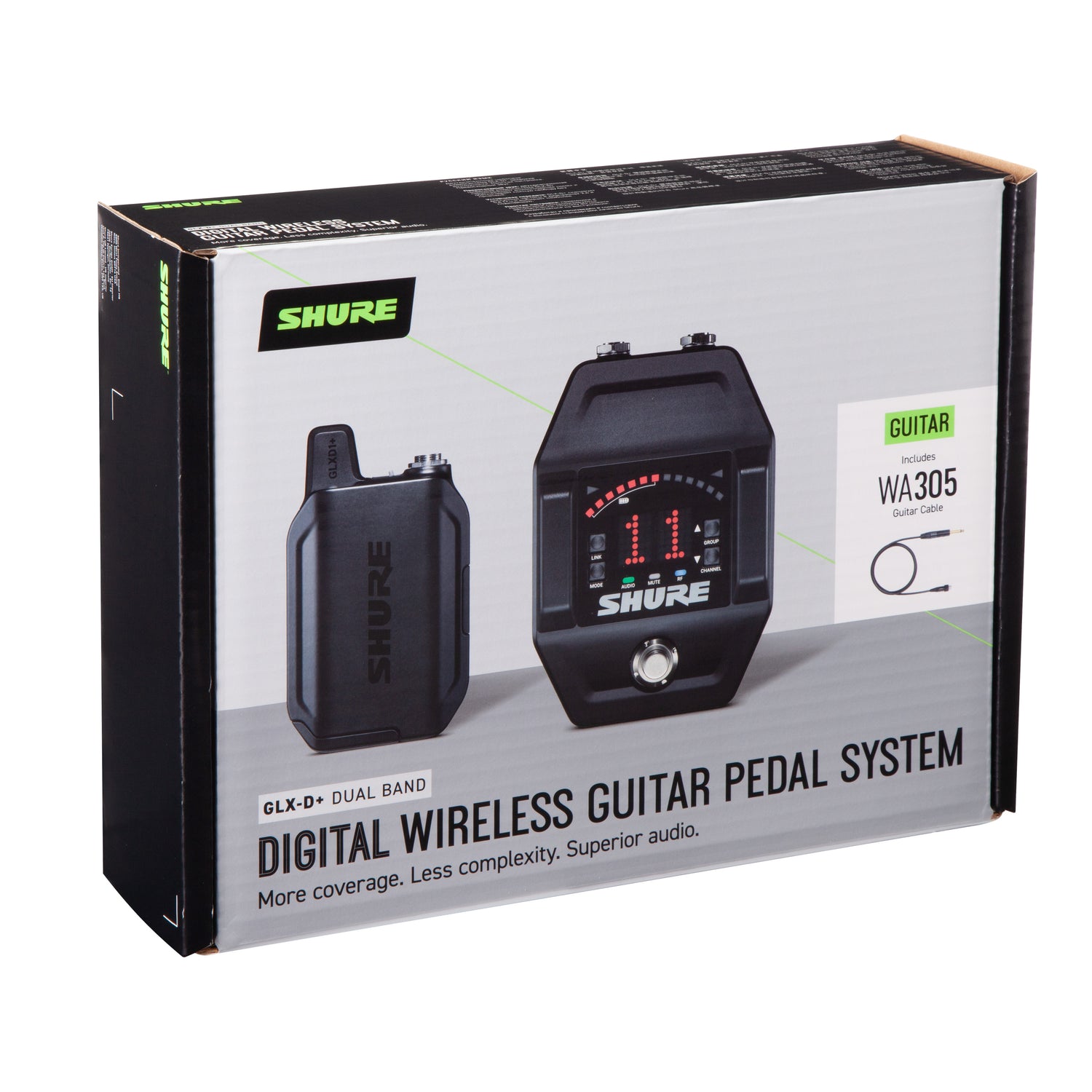 - Langaton kitarapedaalijärjestelmä, jossa on WA305 Premium kitarakaapeli, GLXD1+ langaton bodypack-lähetin ja GLXD6+ kitarapedaalivastaanotin.