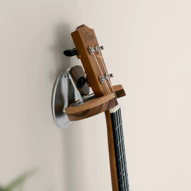- Kauniisti muotoiltu seinäkiinnike ukuleleille tai mandoliineille.