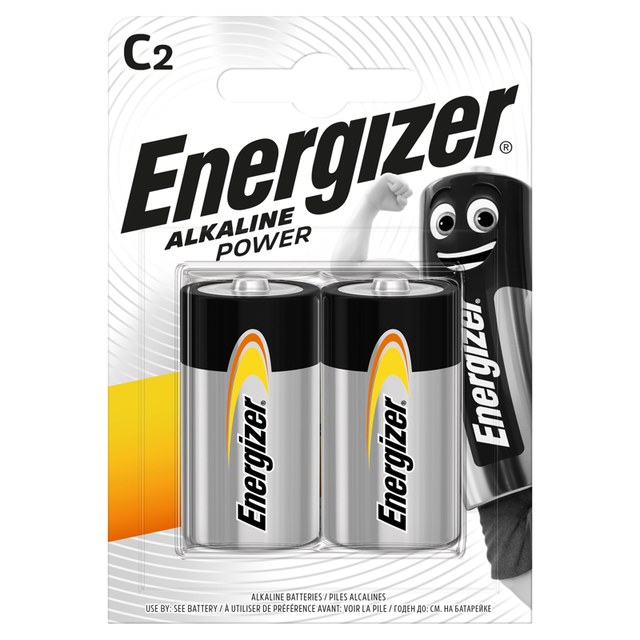 - 2 C-tyypin paristoa esim. kasettisoittimiin, taskulamppuihin ja vastaaviin suuriin elektronisiin tuotteisiin.
