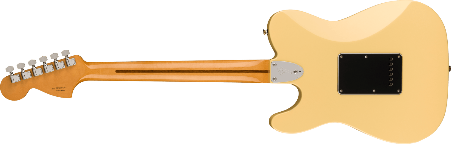 - Vintage-tyylinen synkronoitu tremolo, vintage-tyylinen Telecaster Deluxe -viritysruuvit ikonisessa suuressa 70-luvun tyyliin sopivassa pääkannessa. Fender.