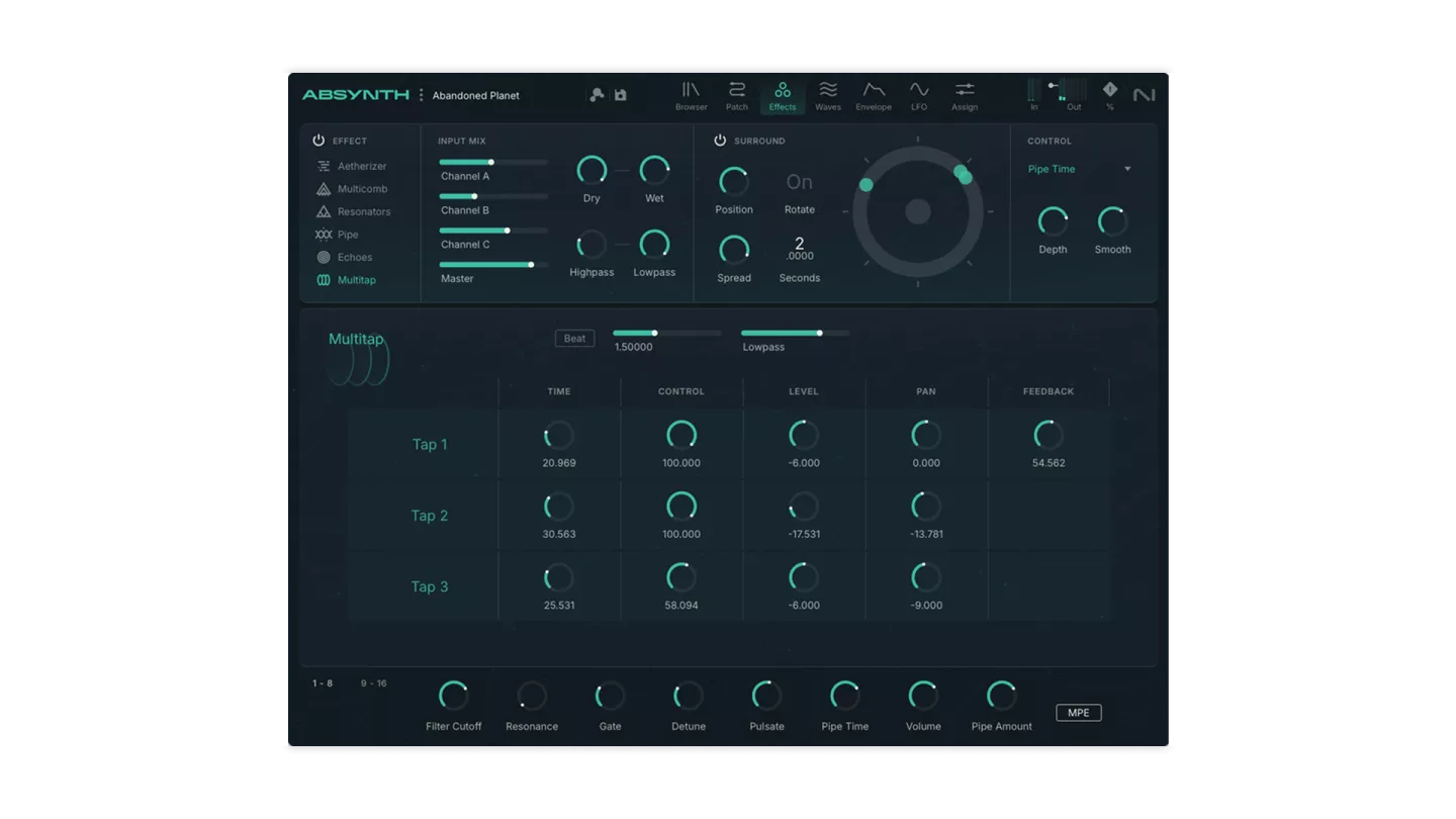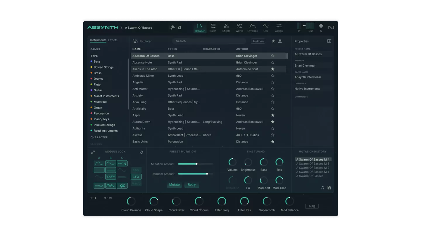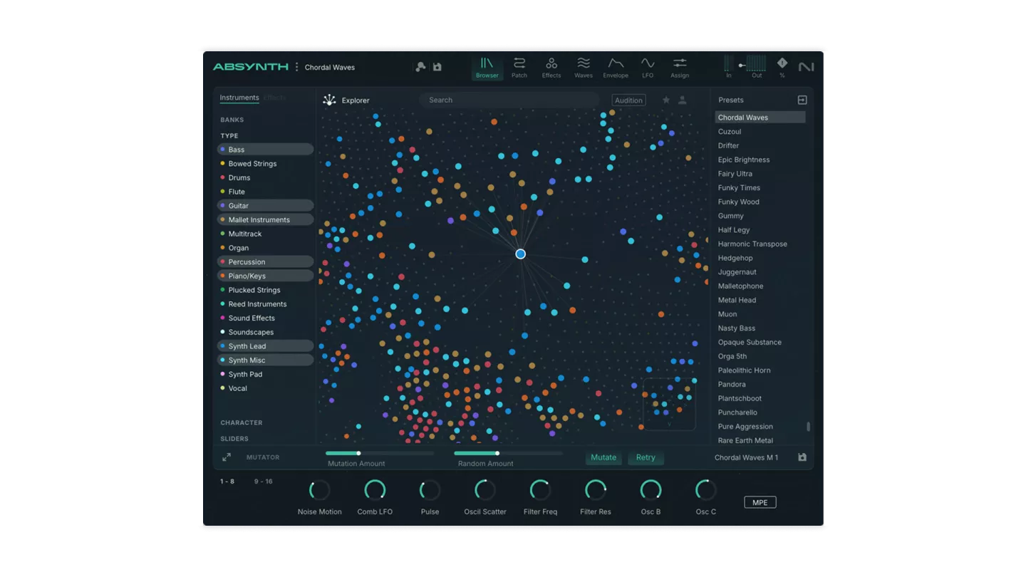 Med MPE support, surround sound og et redesignet interface tilbyder Absynth 6 både øjeblikkelig spilbarhed og dybe lyddesignmuligheder.