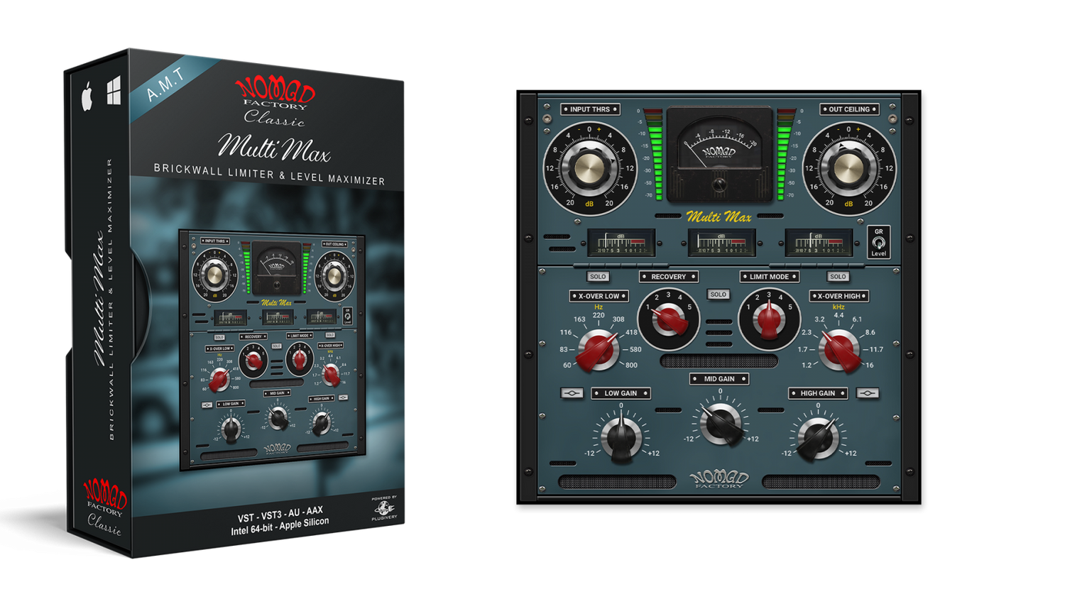 AMT Multi Max multiband peak limiter on erittäin pitkälle optimoitu 3-alueinen look-ahead brick-wall limiter ja level maximizer.