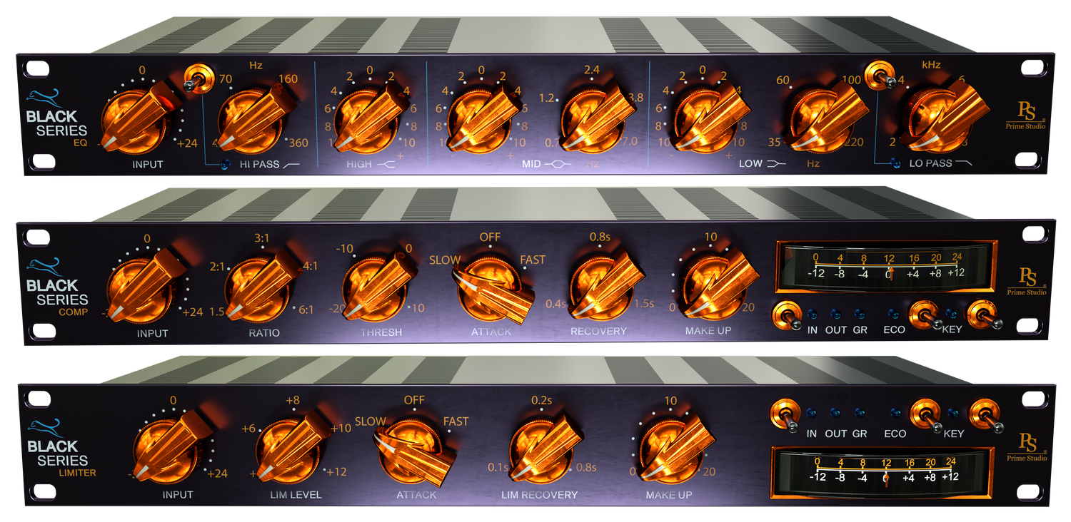 - Black Series Limiter: classic functionality of an analog limiter | Input, Limit Level, Attack, Recovery, Makeup Gain