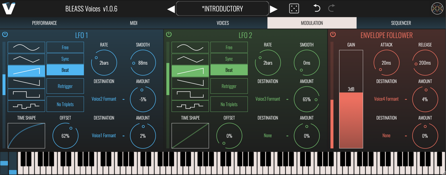 - MODULATION OPTIONS: INCLUDES TWO LFOS, AN ENVELOPE FOLLOWER, AND A PATTERN SEQUENCER FOR DYNAMIC, EVOLVING VOCAL EFFECTS AND CREATIVE SOUND DESIGN.