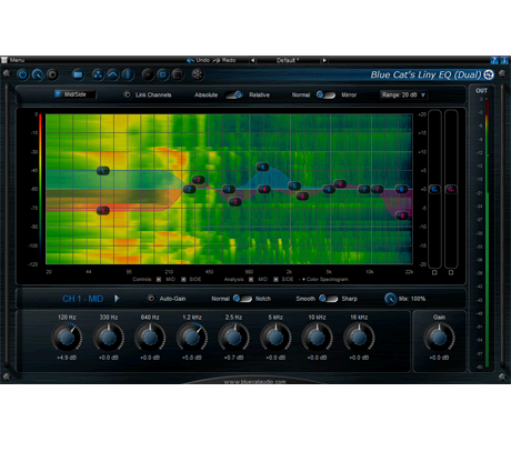 Blue Cat's Liny EQ on 8-kaistainen lineaarivaiheinen ekvalisaattori, jolla on erittäin alhainen latenssi ja kattava visuaalinen palaute: sen erittäin optimoidun lineaarivaiheytimen ansiosta se käsittelee signaalia ilman vaihevirheitä, poikkeuksellisen lyhyellä latenssilla (alle 3 millisekuntia).