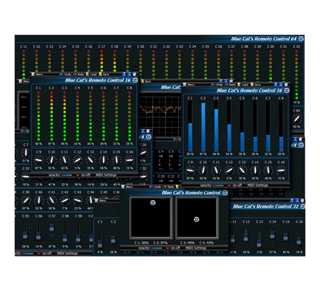 Blue Cat's Remote Control on joukko plug-in'eja, jotka antavat sinun hallita ja seurata reaaliajassa useita MIDI-ohjattavia plug-in'eja tai laitteita yhdestä mukautettavasta käyttöliittymästä.
