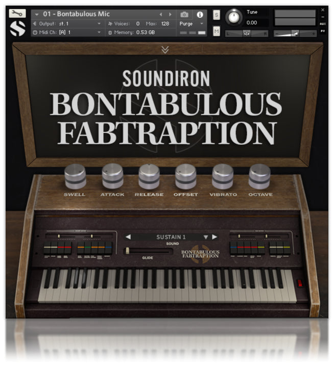 Bontabulous Fabtraption nauhoitettiin kuivassa studiossa käyttäen paria Neumann TLM 103 suuridiaphragma-mikrofonia ja suoraa linjaa. Nauhoitimme monia varastoesiasetuksia kestäville äänille, staccatoille, taikakäyrille ja rumpusilmukoille. Mukana oleva oktaavi-, vibrato- ja FX-hylly antaa sinulle helppokäyttöisen käyttöliittymän, jolla voit täysin mukauttaa ja muokata sen paksua analogista ääntä erilaisiin luoviin tyyleihin.