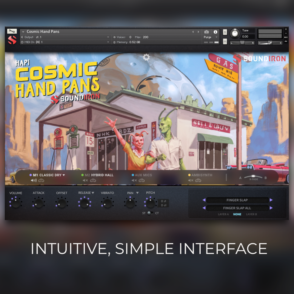 - 20 Custom sound-designed ambiences created from the Hand Pan source